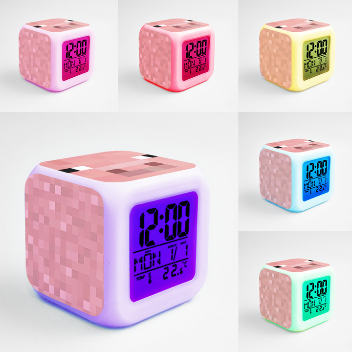⭐ Budzik LED Minecraft Świnka do pokoju dziecka, na prezent ⭐