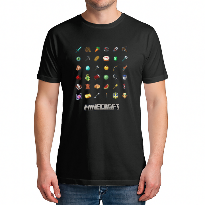 ⭐ Koszulka Unisex Minecraft Ikony Czarna ⭐