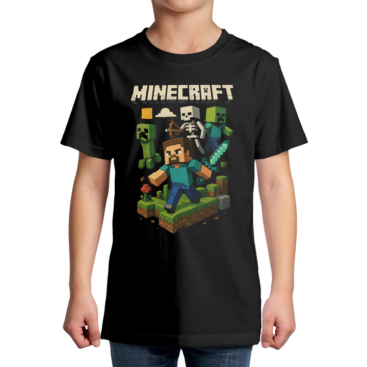 ⭐ Koszulka dziecięca Minecraft Steve Creeper Zombie Szkielet Czarna ⭐