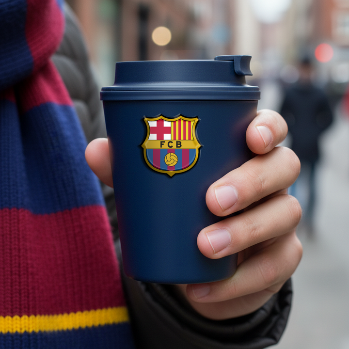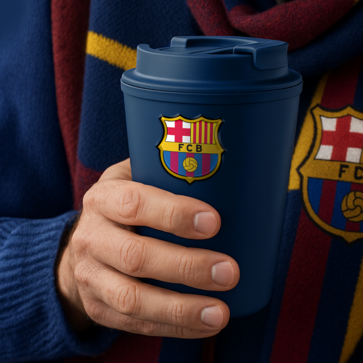 ⭐ Kubek dwuwarstwowy z pokrywką 300ml FC Barcelona Czarny ⭐