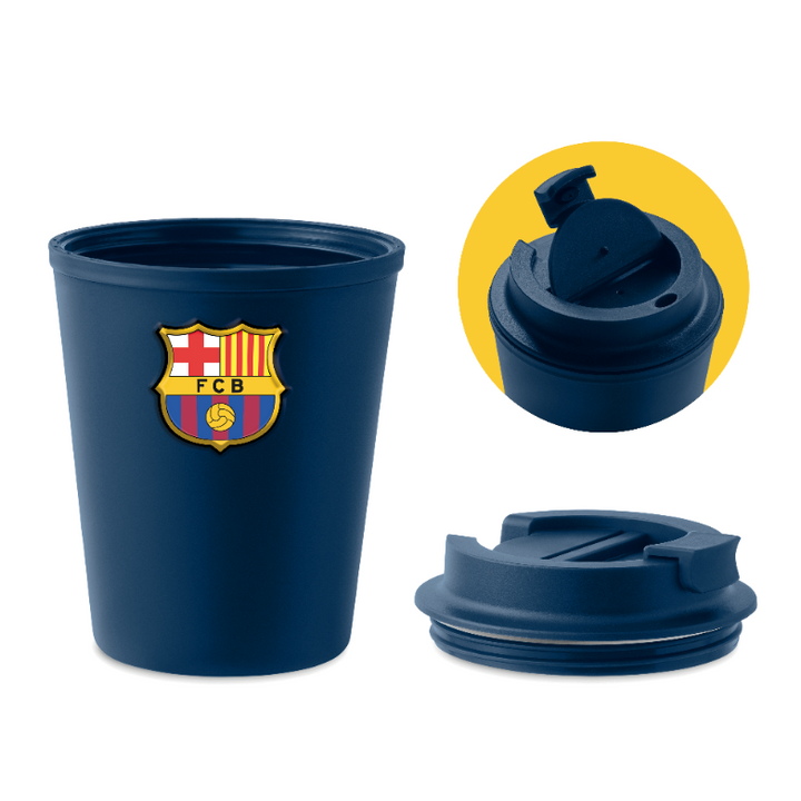 Kubek dwuwarstwowy z pokrywką 300ml FC Barcelona Czarny