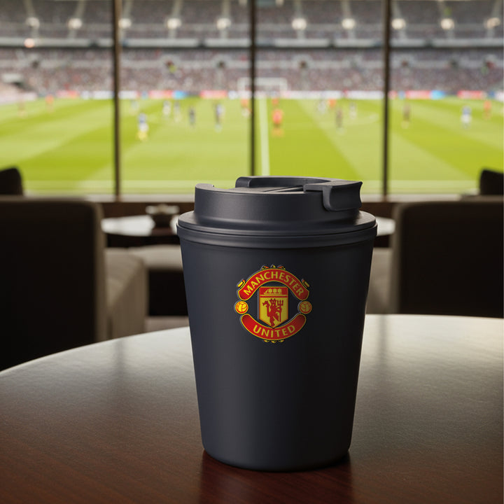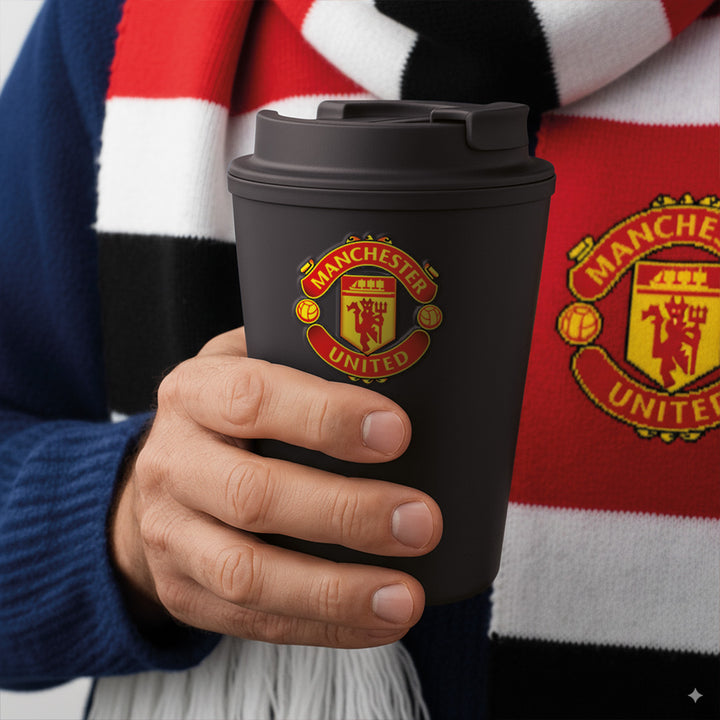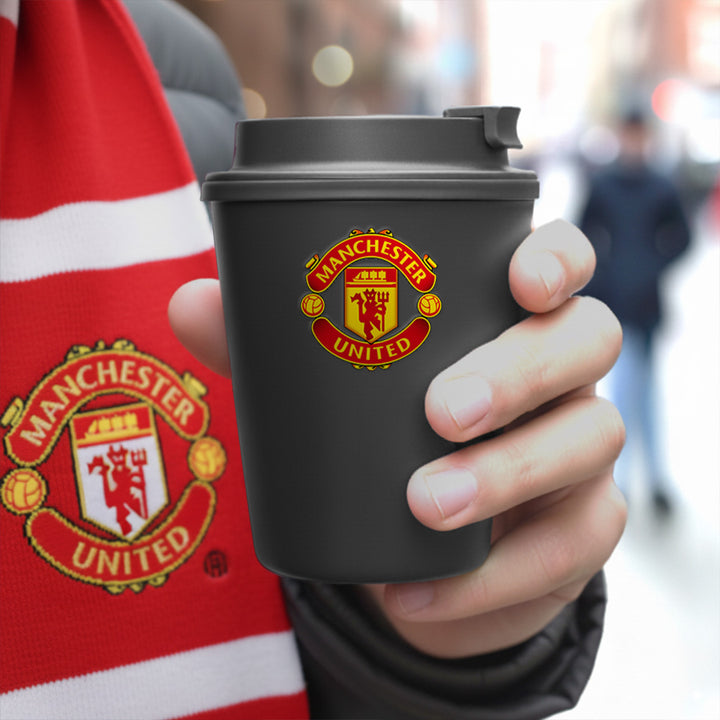 Kubek dwuwarstwowy z pokrywką 300ml Manchester United Czarny