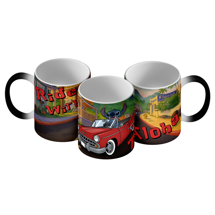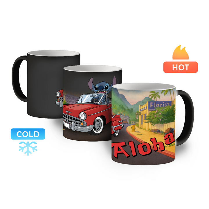 ⭐ Kubek magiczny 330ml Stich Aloha Biały ⭐