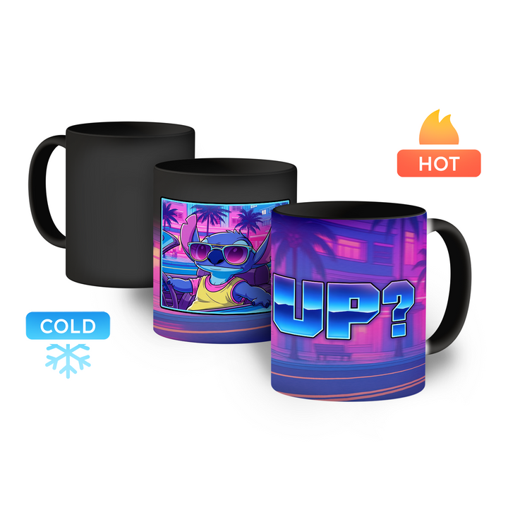 ➕ Po uzupełnieniu kubka ciepłym napojem, czarna warstwa zewnętrzna znika i ujawnia pozostałą część grafiki, aż do ponownego schłodzenia.