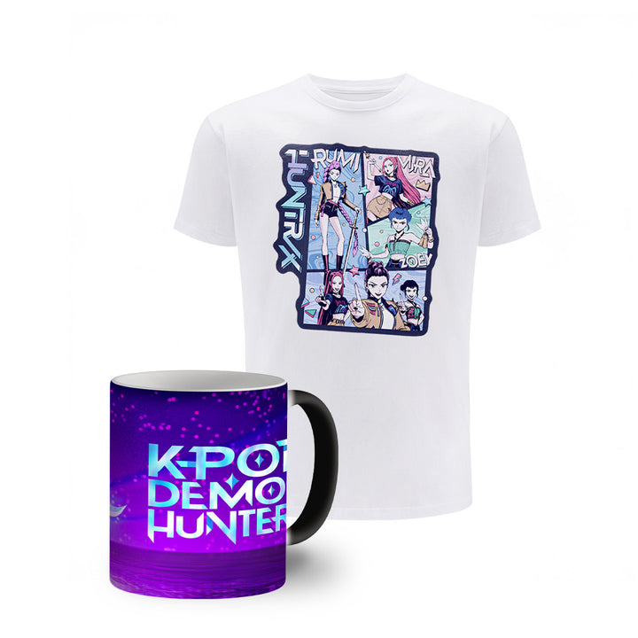 Zestaw Koszulka dziecięca K-Pop Demon Hunters Huntrix 002 Biała + Kubek magiczny