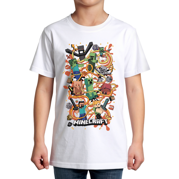 ⭐ Zestaw Koszulka dziecięca Minecraft Biała + Kubek magiczny ⭐