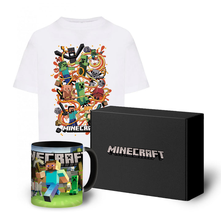 Zestaw Koszulka dziecięca Minecraft Biała + Kubek magiczny