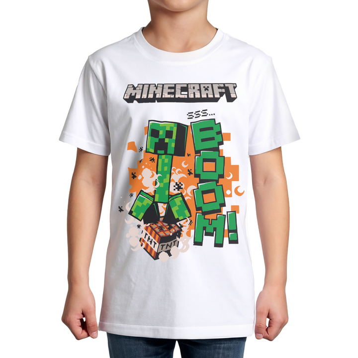 ⭐ Zestaw Koszulka dziecięca Minecraft Boom Biała + Kubek magiczny ⭐