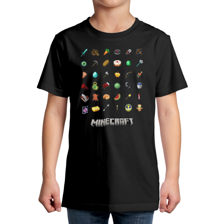 ⭐ Zestaw Koszulka dziecięca Minecraft Ikony Czarna + Kubek magiczny ⭐