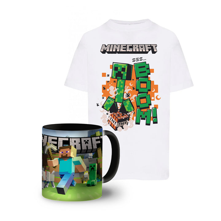 ⭐ Zestaw Koszulka Minecraft Boom Biała + Kubek magiczny ⭐