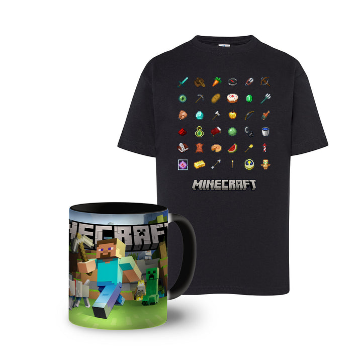 ⭐ Zestaw Koszulka Minecraft Ikony Czarna + Kubek magiczny ⭐